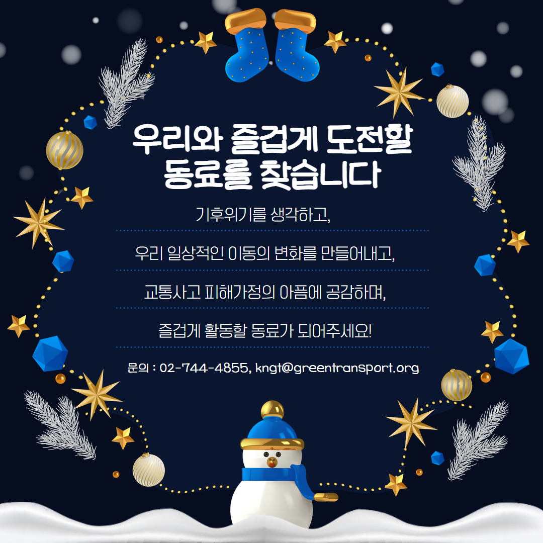 생명존중의 교통문화와 사람중심의 교통정책을 실현하기 위해 1993년부터 활동한 녹색교통운동에서 같이 함께할 새로운 활동가를 찾습니다.
